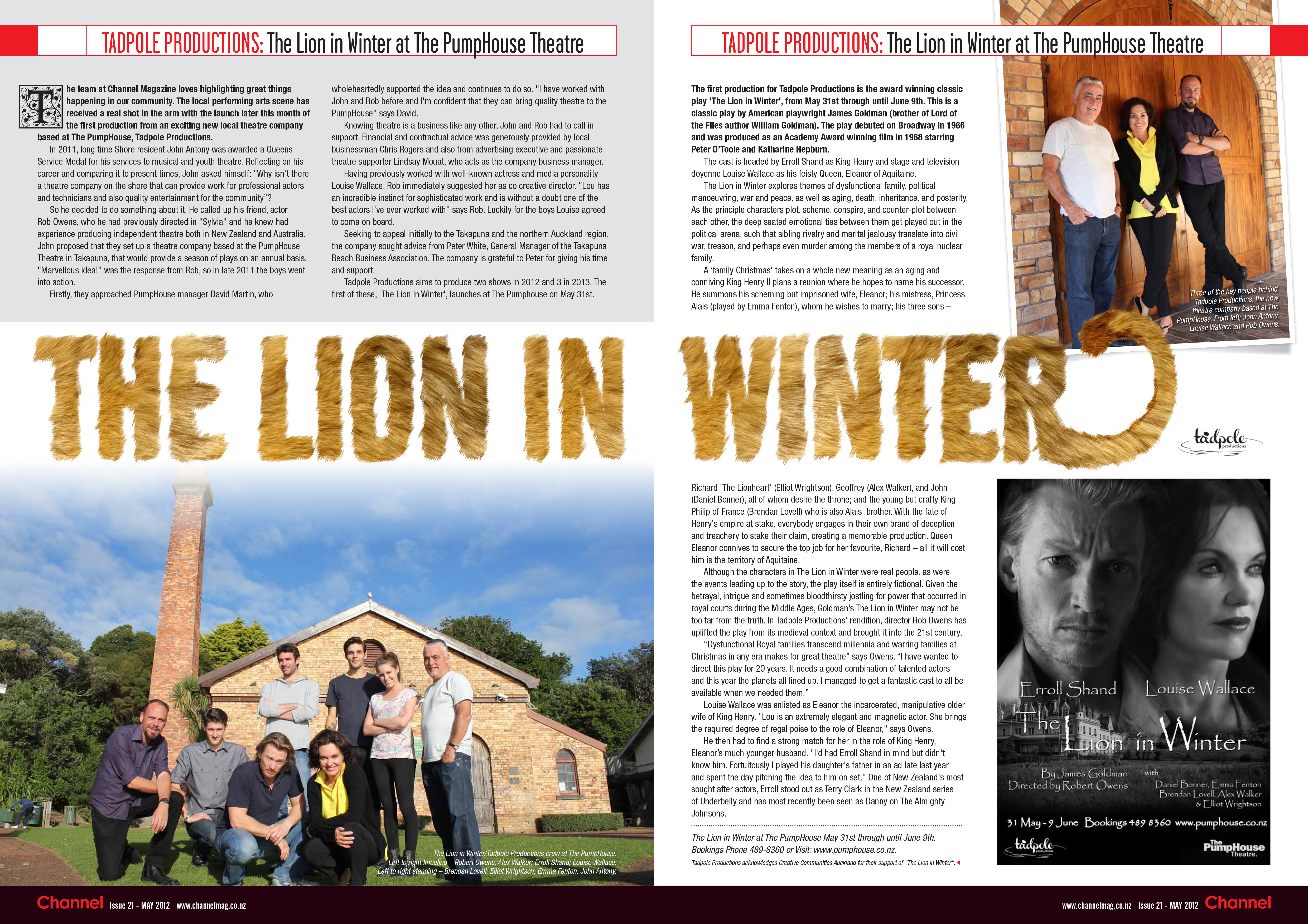 THE LION IN WINTER at The Pumphouse, Takapuna, Auckland Reviewed by Adey Ramsel, 1 Jun 2012 |